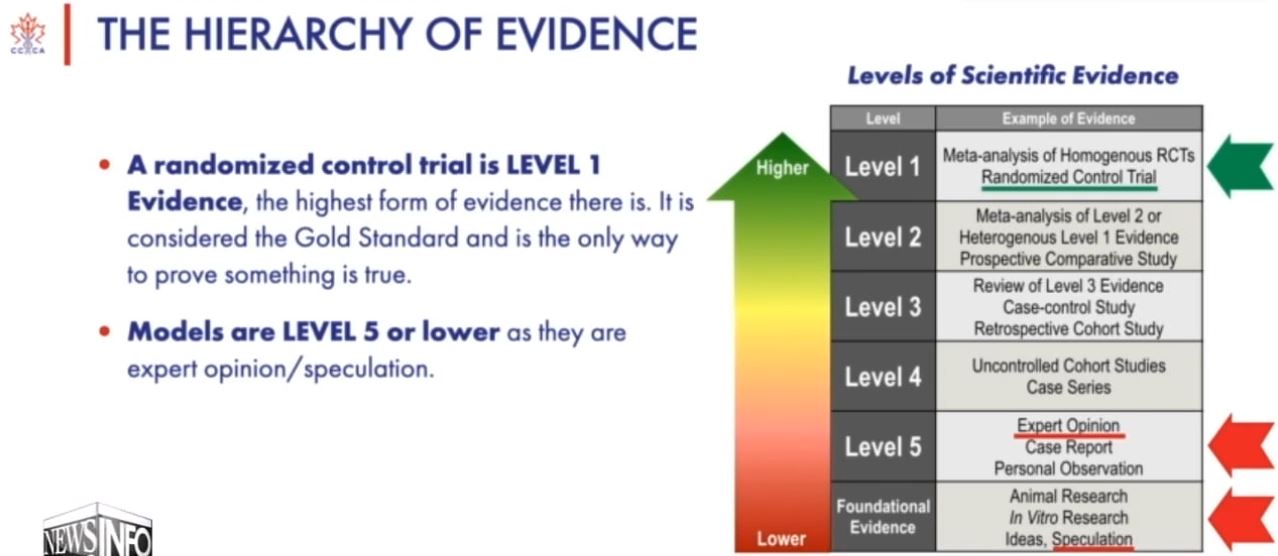 4. Just one day later she spoke again after receiving a "lot of messages", stating that there are mathematical models that claim as much as 40% asymptomatic spread. (FACT: Models are the lowest form of scientific evidence.) Clearly, Dr. Maria Van Kerkhove and the WHO did/do not trust these models (versus actual contact tracing studies) otherwise she would have cited them the day before and would not have stated that symptomatic spread is "very rare". Simple. Despite false and/or intellectually dishonest media reports, the WHO's position on asymptomatic spread did not and could not have changed overnight. No new study was published overnight.