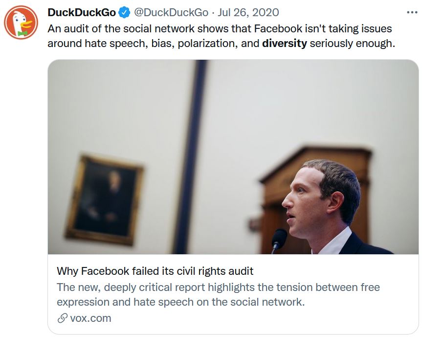 Some people have erroneously been under the impression that DuckDuckGo is a 'conservative' search engine. It is not. Duck Duck Go has merely partnered with other left-wing sites like Bing, Yahoo, and Wikipedia to produce 'their' search results.