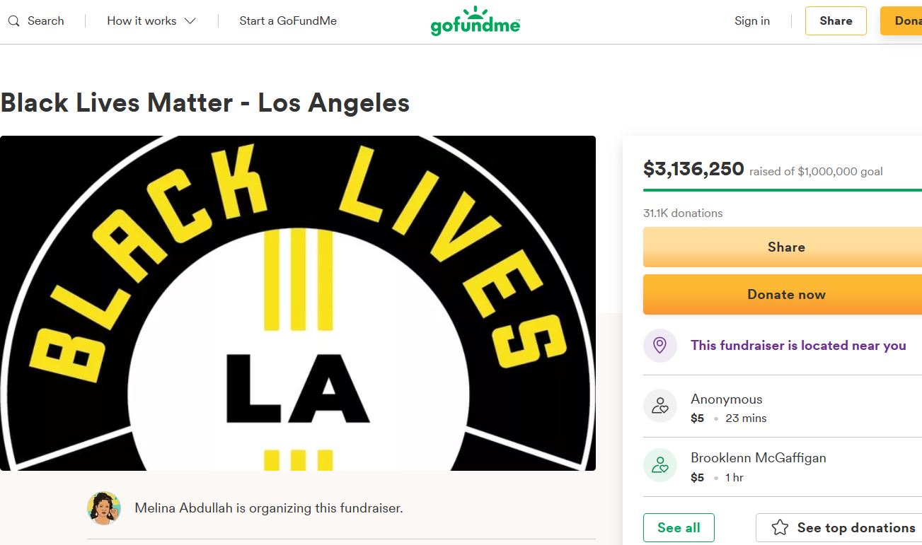 GoFundMe allows fundraisers for the violent Marxist group Black Lives Matter.
