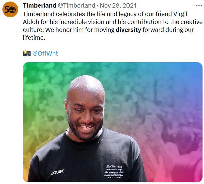'friend' Virgil Abloh for 'moving diversity forward'. Abloh donated