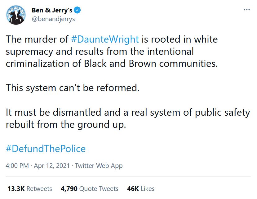 Ben & Jerry's is a dangerous company run by communists. How is that? They want to #DefundThePolice and dismantle the justice system because they say "the system can't be reformed".
