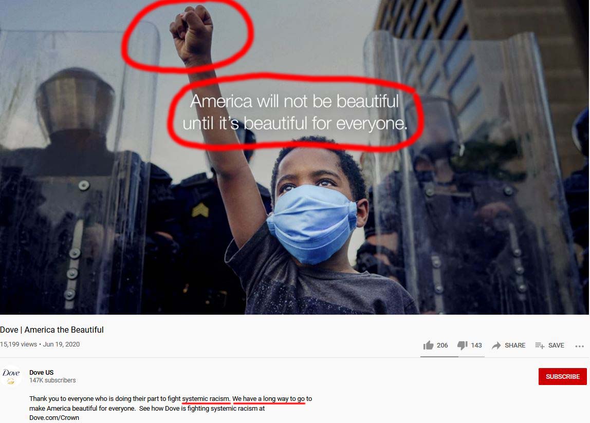 Unilever runs a race mongering commercial stating that "American will not be beautiful until it's beautiful for everyone" with a black child holding up a black panther fist, and states "We have a long way to go", all to futher the false narrative that America is systemically racist. Imagine if an American company insulted a foreign country by running a commercial that accused their people of being systemically racist.