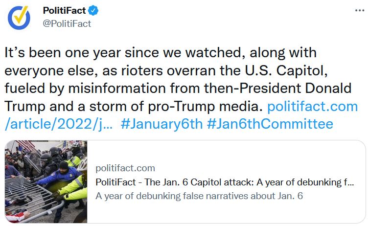 Politifact - Self-promoted as a "nonpartisan fact-checking site" that uses "strict journalistic standards", is actually a liberal mouth piece (or "flop-check" site) that distorts the truth and posts outright false information [1, 2, 3]. Aggressive partisan targeting of Republicans FBO Democrats. Never call PolitiFact an “independent fact-checker.” They are every bit as liberal and biased as their friends in the liberal media [1]. Uses selection bias, and lying by omission. Selective outrage. False information. Makes strawman denials to suppress truthful stories. Run by people from the left-wing Tampa Bay Times. 6 times more likely to defend Biden than fact check him [1, 2]. PolitiFact ignored fact checking Biden bringing up the Charlottesville “fine people” lie during the CNN debate, despite Snopes labeling it false. Prematurely declared true reports of inflated COVID deaths to be a 'pants on fire' lie. Politifact spread blatant lies about Kyle Rittenhouse. Politifact tried to rewrite history about Tim Walz's abortion record. Politifact rushed to defend Venezuelan gangs. Other examples: 1, 2, 3, 4, 5, 6, 7,